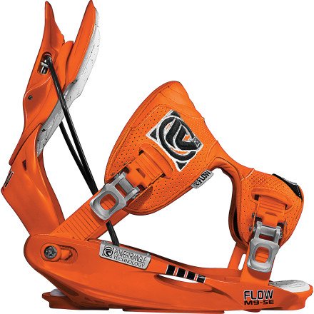 It doesn't matter if you shred the park with raw skill or blow through pow stashes with finesse, the Flow M9-SE Snowboard Binding provides performance and slick looks you can use. Equipped with Flow's precise, tool-free adjustability and tweakable highback, the M9-SE embodies the ideal blend of functionality, versatility, and flex that will help you stand out anywhere on the mountain.